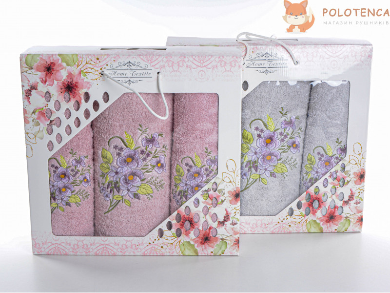 Набір рушників "Фіолетові квіти" - чудовий додаток до вашої ванної кімнати або кухні. Кожен рушник прикрашений чарівними фіолетовими квітами, що надають їм ніжний та елегантний вигляд.