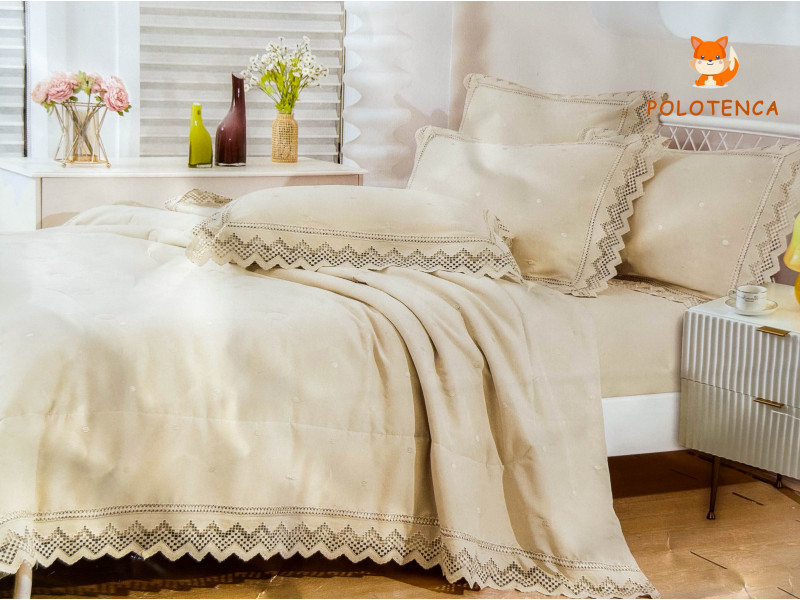 Постільна білизна євро з покривалом №1 – це витончений комплект, який поєднує комфорт та естетику. Натуральна бавовна забезпечує м’якість, дихаючі властивості та довговічність, а покривало з ніжним мереживом по краях додає комплекту елегантності. Така постіль стане окрасою спальні й подарує приємний відпочинок.